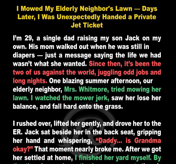 When we got back, I mowed her entire lawn while Jack sat on the porch, waving at her through the window. She looked embarrassed and grateful all at once.
