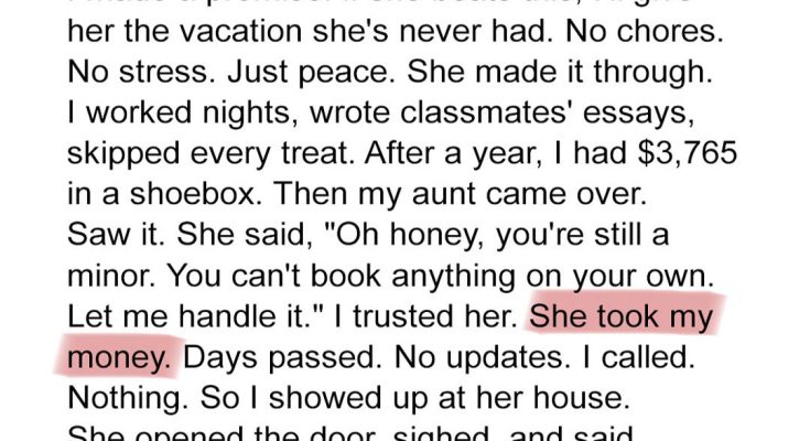 I worked late shifts, skipped every party, and saved nearly $4,000 to surprise my mom who’d just beaten cancer with a trip to the ocean. Then my aunt swooped in with fake promises and stole my entire year’s effort. She thought she’d gotten away with it. But karma was watching… and plotting.