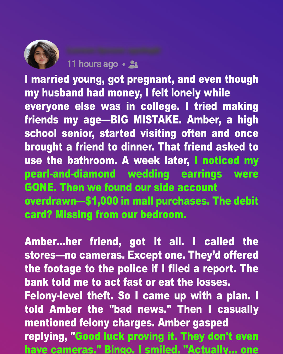 I thought I was just making a new friend until Amber brought a quiet guest to dinner who “got lost” on the way to the bathroom. Days later, my wedding earrings were gone… and our bank account was drained. They thought they were slick. But I had a plan to make them pay!