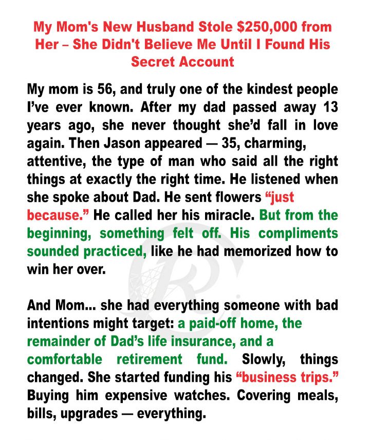 My Mom’s New Husband Stole $250,000 from Her – She Didn’t Believe Me Until I Found His Secret Account