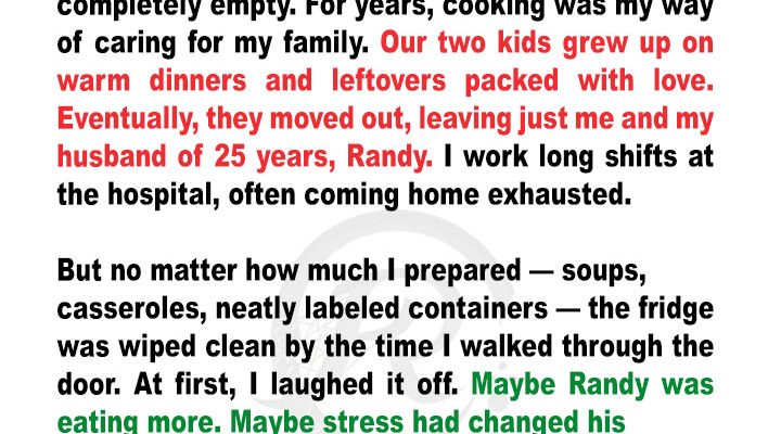For 25 years, Doris poured her heart into her family through her cooking. But when her meals began vanishing from the fridge without a trace, she was baffled. One evening, she came home early and caught the culprit red-handed, sparking events that made her walk away from everything she knew.
