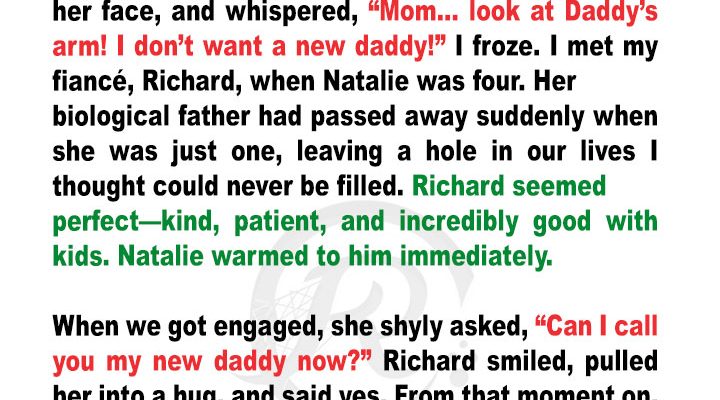 “Mom,” she whispered, barely audible over the music. “Look at Daddy’s arm. I don’t want a new Daddy. Please.”