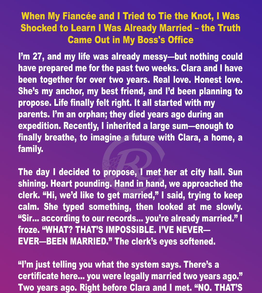 When My Fiancée and I Tried to Tie the Knot, I Was Shocked to Learn I Was Already Married – the Truth Came Out in My Boss’s Office