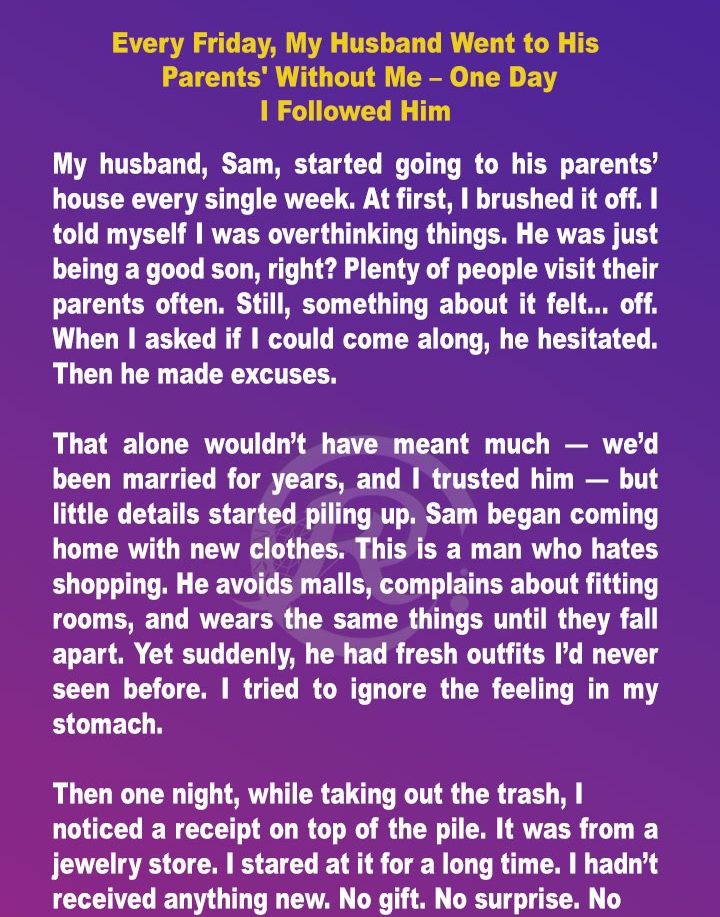 Every Friday, My Husband Went to His Parents’ Without Me – One Day I Followed Him