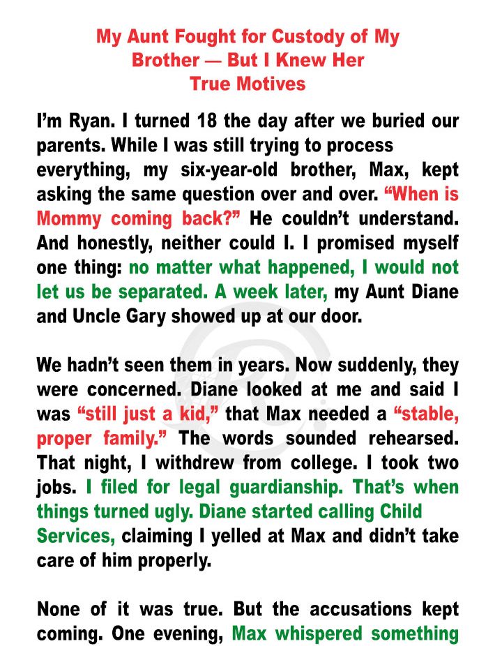 The day after Diane filed for custody, I walked into the college office and withdrew. They asked me if I was sure. I said yes before they finished the sentence. Education could wait. My brother couldn’t.