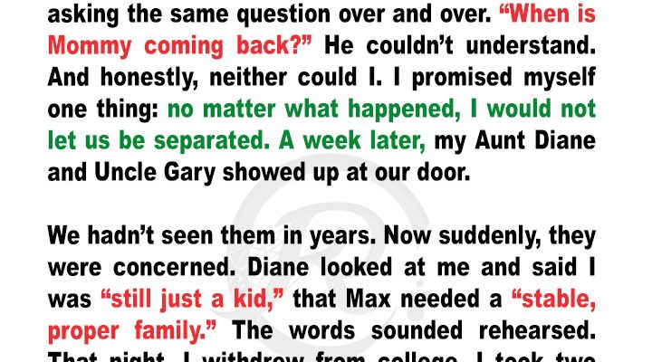 The day after Diane filed for custody, I walked into the college office and withdrew. They asked me if I was sure. I said yes before they finished the sentence. Education could wait. My brother couldn’t.