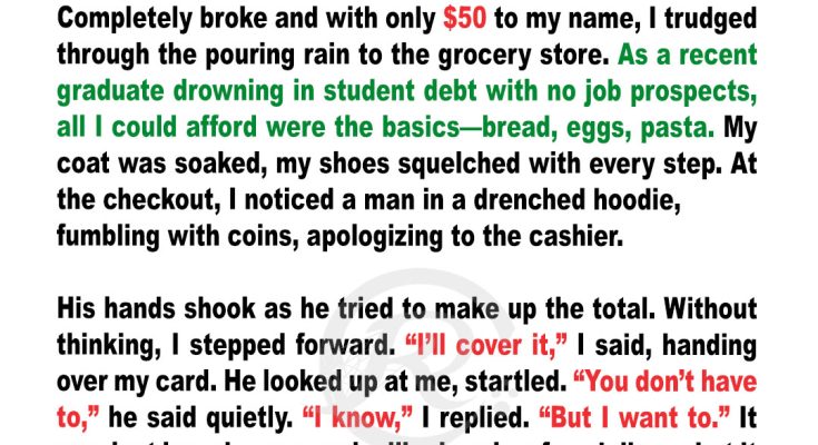 Emma’s life was at its breaking point. She was alone, grieving, and down to her last $50. On a rainy night, she gave up half of it to help a struggling stranger at the grocery store. She expected nothing in return, but the very next day, that same man changed her life forever and left her in tears.