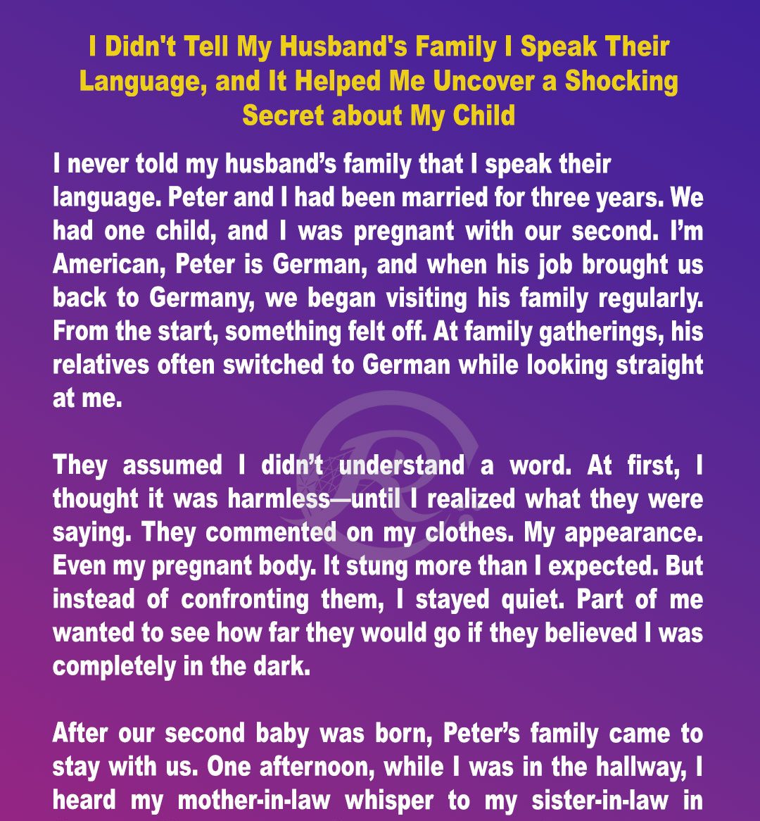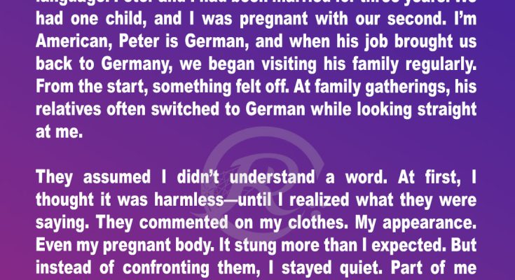 Germany was beautiful, and Peter was thrilled to be back in his home country. But I struggled. I missed my family and friends. And Peter’s family, well, they were… polite at best. His parents, Ingrid and Klaus, didn’t speak much English, but I understood more German than they realized.