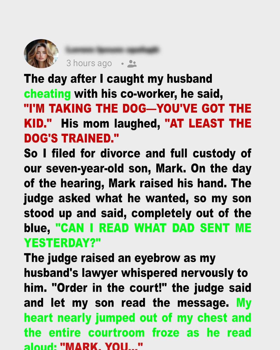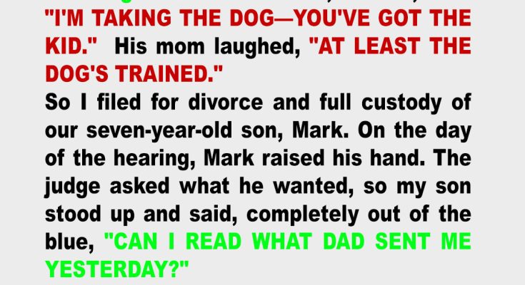 “Mark,” he read. “You need to tell the judge you want to live with me and Grandma, or I’ll make sure Mom loses the house. She’ll live on the street, buddy.”