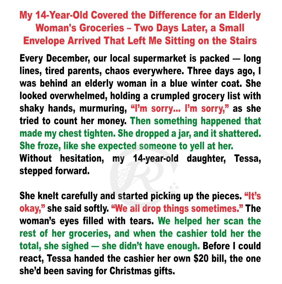 My daughter gave away her Christmas money to a struggling elderly woman in the grocery checkout line, and my heart swelled with pride. But when an envelope appeared in our mailbox two days later, I wasn’t prepared for what was inside… or for the tears that would come the moment I opened it.