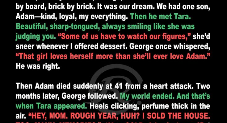 “It’s my home,” I said, trying to keep my voice steady. My hands were trembling, but I didn’t let them see just how much I was shaking. “George and I built it. The deed is in my name.”
