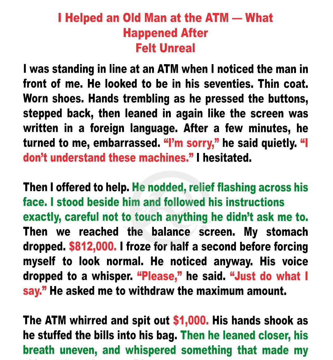 I Helped an Old Man at the ATM — What Happened After Felt Unreal