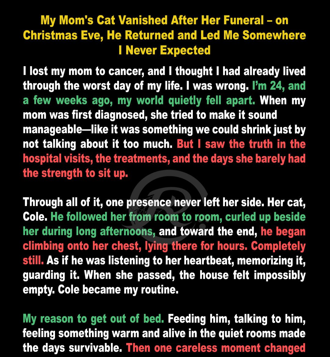 My Mom’s Cat Vanished After Her Funeral – on Christmas Eve, He Returned and Led Me Somewhere I Never Expected