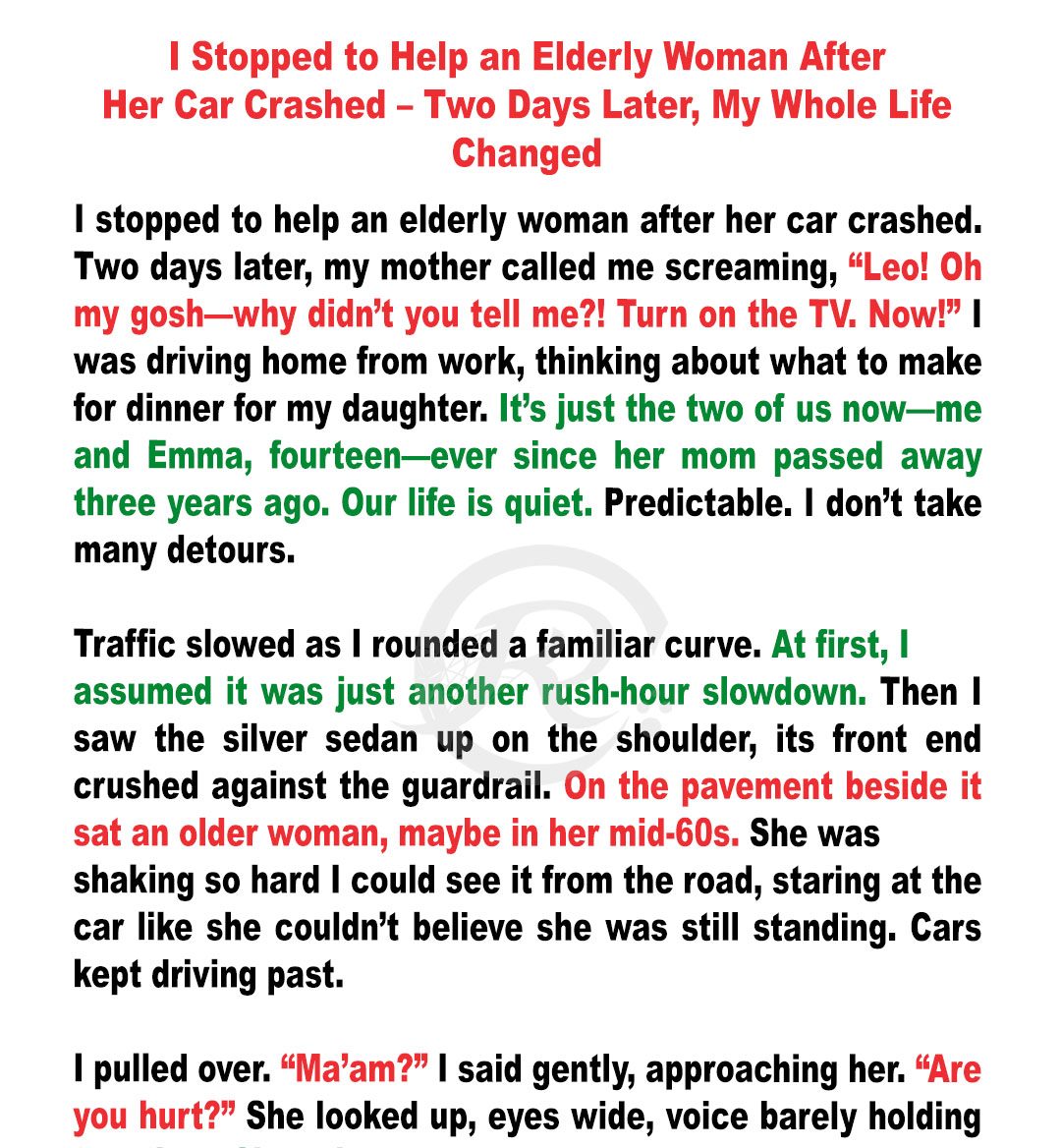 I thought pulling over that afternoon was just basic human decency. An elderly woman in trouble, a moment of kindness, nothing more. But when my phone rang two days later, and my mom screamed about turning on the TV, I realized that one choice had set something in motion I never could’ve predicted.