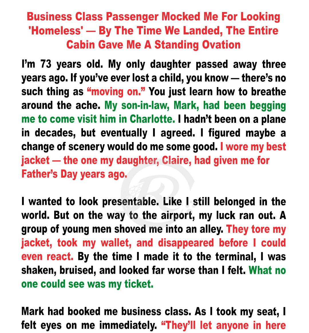 I was called “homeless,” mocked in front of a full cabin, and treated like trash in business class. By the time the wheels hit the runway, the same people who laughed at me were on their feet, giving me a standing ovation.