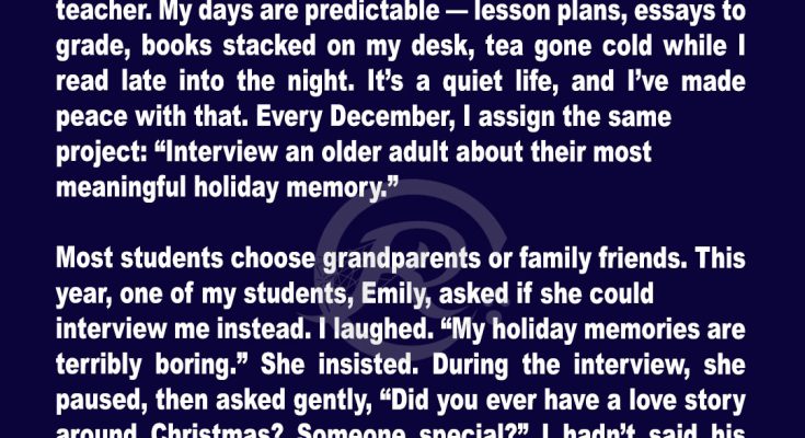 I’m a 62-year-old literature teacher who thought December would be the usual routine—until a student’s holiday interview question unearthed an old story I’d buried for decades. A week later, she burst into my classroom with her phone, and everything shifted.