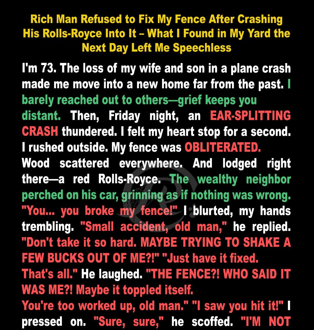 “Sure, sure,” he said, waving me off like I was a leaf on his windshield. He stepped closer, his voice low. “And for the record… I’m not paying a single cent for that old, rotten fence of yours.”
