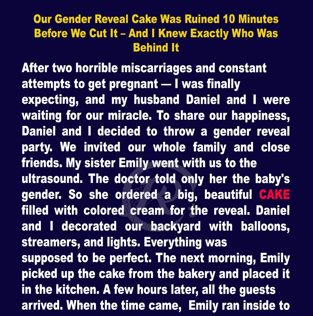 After two heartbreaking miscarriages, Hannah’s rainbow baby was finally on the way. The gender reveal party was perfect until her sister’s scream pierced the air. Their beautiful cake lay destroyed on the kitchen floor, frosting smeared everywhere, the secret inside exposed. But who would sabotage such a precious moment, and why?