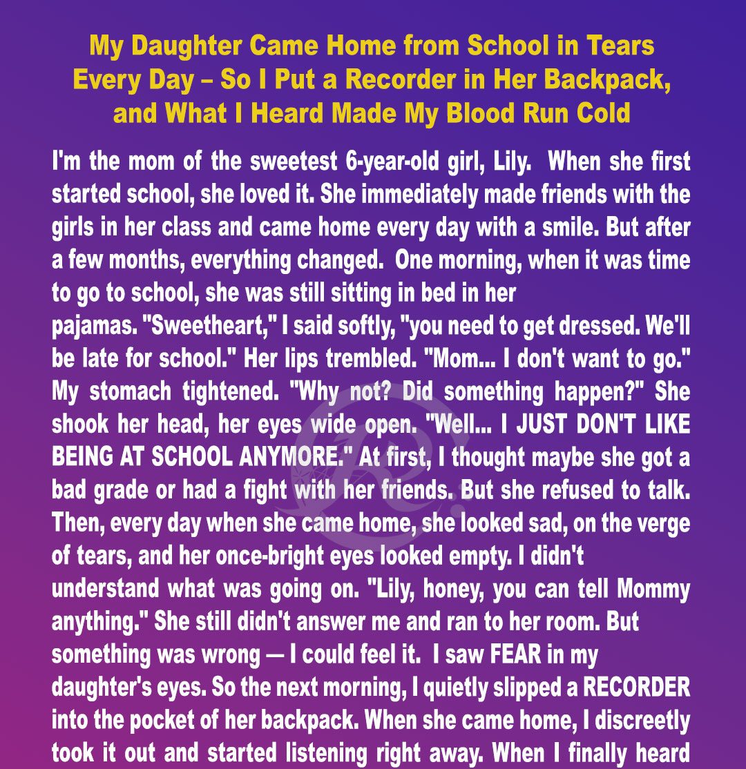 For weeks, my daughter came home from school with dim eyes and silent tears, and I couldn’t figure out why. So I trusted my instincts, hit record, and uncovered a truth no parent ever wants to hear.