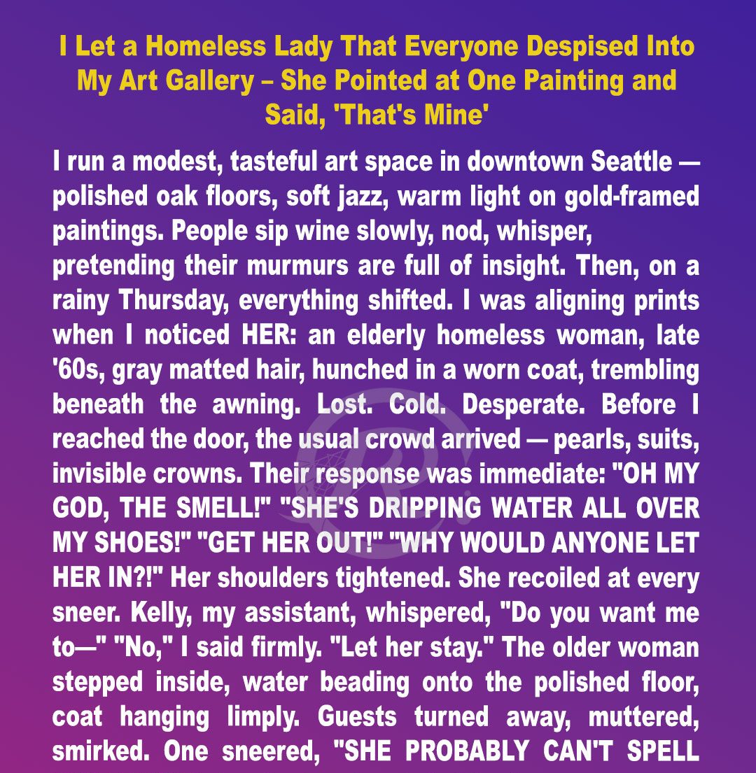 She walked in, soaked, ignored, and judged, then pointed to a painting and said, “That’s mine.” I didn’t know it at the time, but uncovering the truth behind her words would turn my entire gallery upside down and bring someone unexpected to my doorstep.
