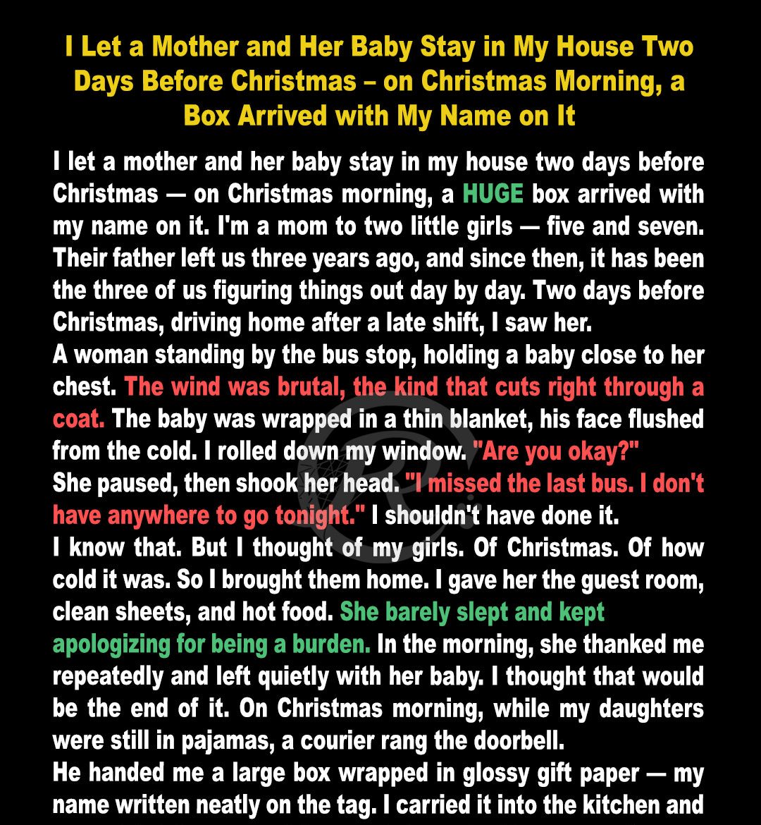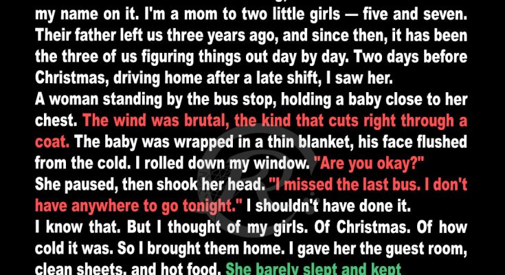 Two days before Christmas, I broke every “don’t talk to strangers” rule I’d ever been taught and brought a freezing mother and her baby home with me. I thought I was just giving them a warm place to sleep for the night—I didn’t realize it was going to change our lives.