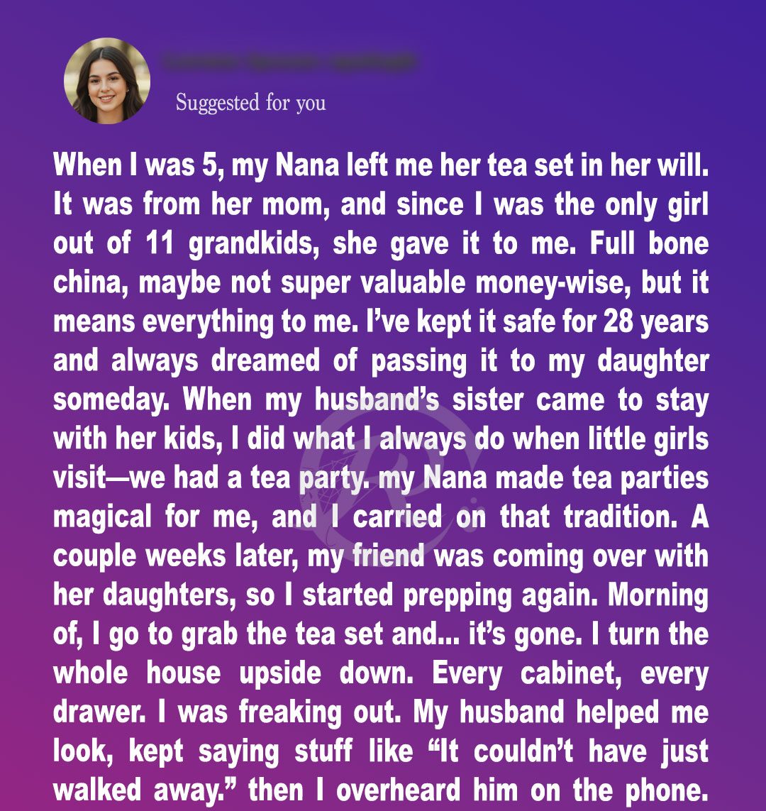 Days turned into weeks. The tea set remained missing. My heart ached. It wasn’t the monetary value; it was Nana. It was the legacy, the tangible proof of her love, her stories, her presence. I brought it up constantly. My family grew impatient, dismissing it as “just stuff.” But it wasn’t just stuff. It was a piece of my soul. How could it just vanish? I started to feel a gnawing suspicion. Someone had to know. Someone had to have seen it.