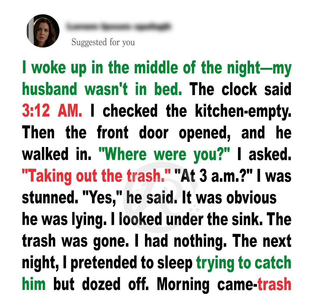 After 22 years of marriage, my husband suddenly started taking the trash out at 3 a.m. He’d never volunteered for it… not once. So why now? One night, I followed him and what I discovered broke my heart in ways I wasn’t ready for.