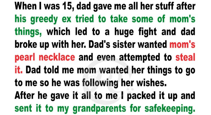 It wasn’t even the first time someone went after Mom’s things. My aunt, his sister, once tried to steal a pearl pendant that had been Mom’s favorite. I found it stuffed in her purse. That moment stuck with me more than I care to admit.