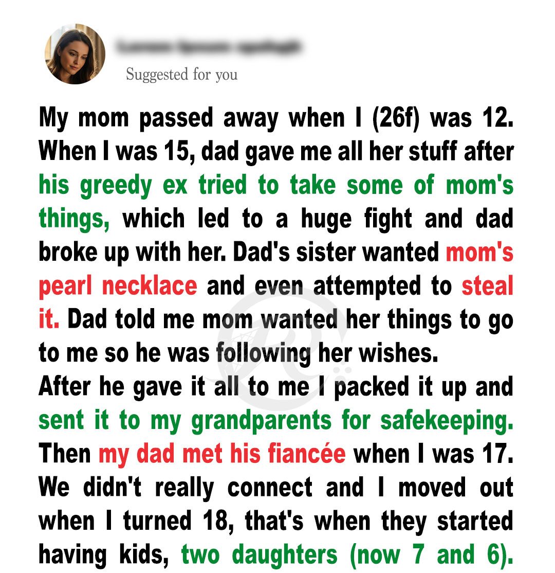 When I was 15, my dad gave me everything that belonged to my mom. Not because he suddenly got sentimental — no, it was because his then-girlfriend tried to take some of it.