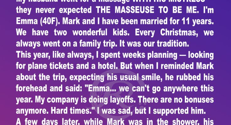 My husband came in for a couple’s massage with his mistress. He never expected the masseuse to be me.