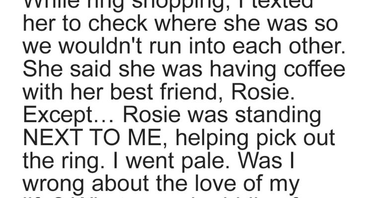 That was the first red flag. Because Rosie was literally right next to me at that exact moment, holding up different diamond settings under the jewelry store’s bright lights.