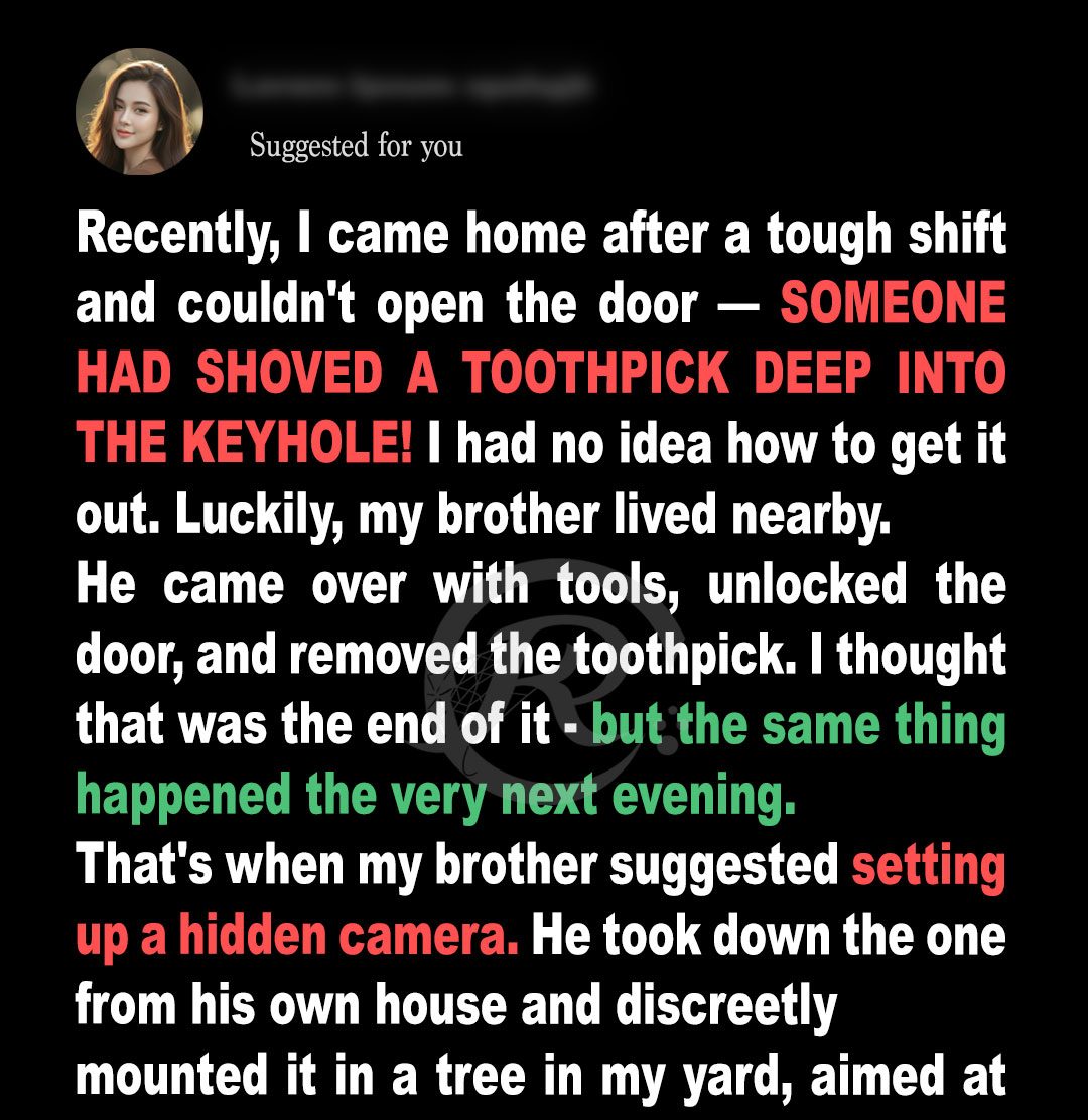 I came home from work one evening and found a toothpick jammed in my lock. Then it happened again. Picture me outside my own house, wielding tweezers like some deranged locksmith. I didn’t report it. I set a trap… because if someone wanted to play weird little games, I had one better.