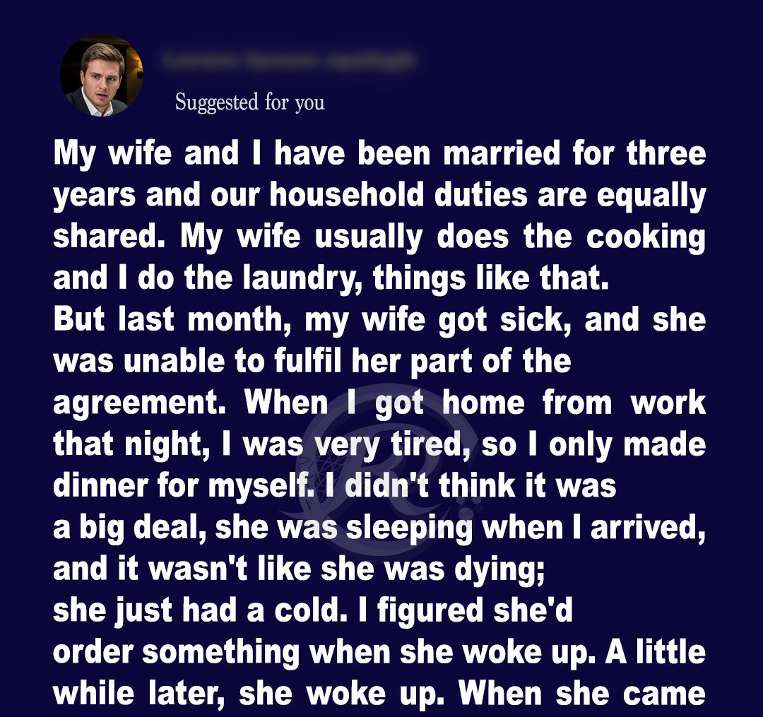 Jason, described the abrupt end of his three-year marriage, which began with what he considered a completely minor incident. He and his wife had always shared household duties—she typically cooked, and he handled the laundry, among other tasks. Last month, however, his wife fell ill with a cold, leaving her unable to fulfill her part of the cooking agreement. Jason came home from a particularly tiring day at work, and upon finding his wife asleep, he decided to only make a small dinner for himself, specifically a sandwich, reasoning that he was exhausted and she could simply order something later when she woke up. This seemingly small lapse in consideration was met with unexpected, catastrophic fury.