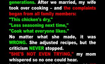 My wife Megan poured her heart into our family’s monthly dinners, but all she got in return were cruel comments from my relatives. After witnessing her tears one too many …