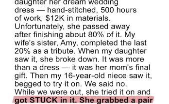 My late wife spent 500 hours hand-sewing the perfect wedding dress for our daughter. It cost $12,000 and was her final act of love before she passed away. Last week, …